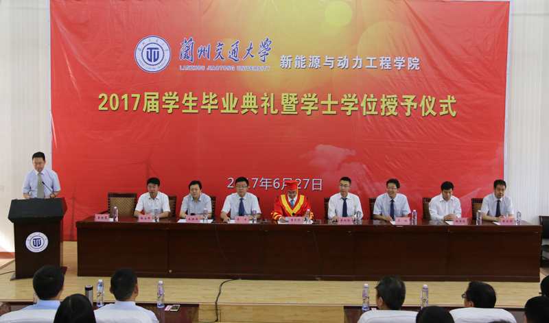 蘭交大教務(wù)處副處長王海涌宣讀了關(guān)于授予學(xué)士學(xué)位的決定;學(xué)生處處長貢力宣讀了關(guān)于表彰2016屆優(yōu)秀畢業(yè)生的決定;校黨委副書記、常務(wù)副校長李引珍為2017屆畢業(yè)生代表正冠撥穗并頒發(fā)學(xué)位證書;各位領(lǐng)導(dǎo)為畢業(yè)生頒發(fā)了畢業(yè)證書和優(yōu)秀畢業(yè)生榮譽(yù)證書。