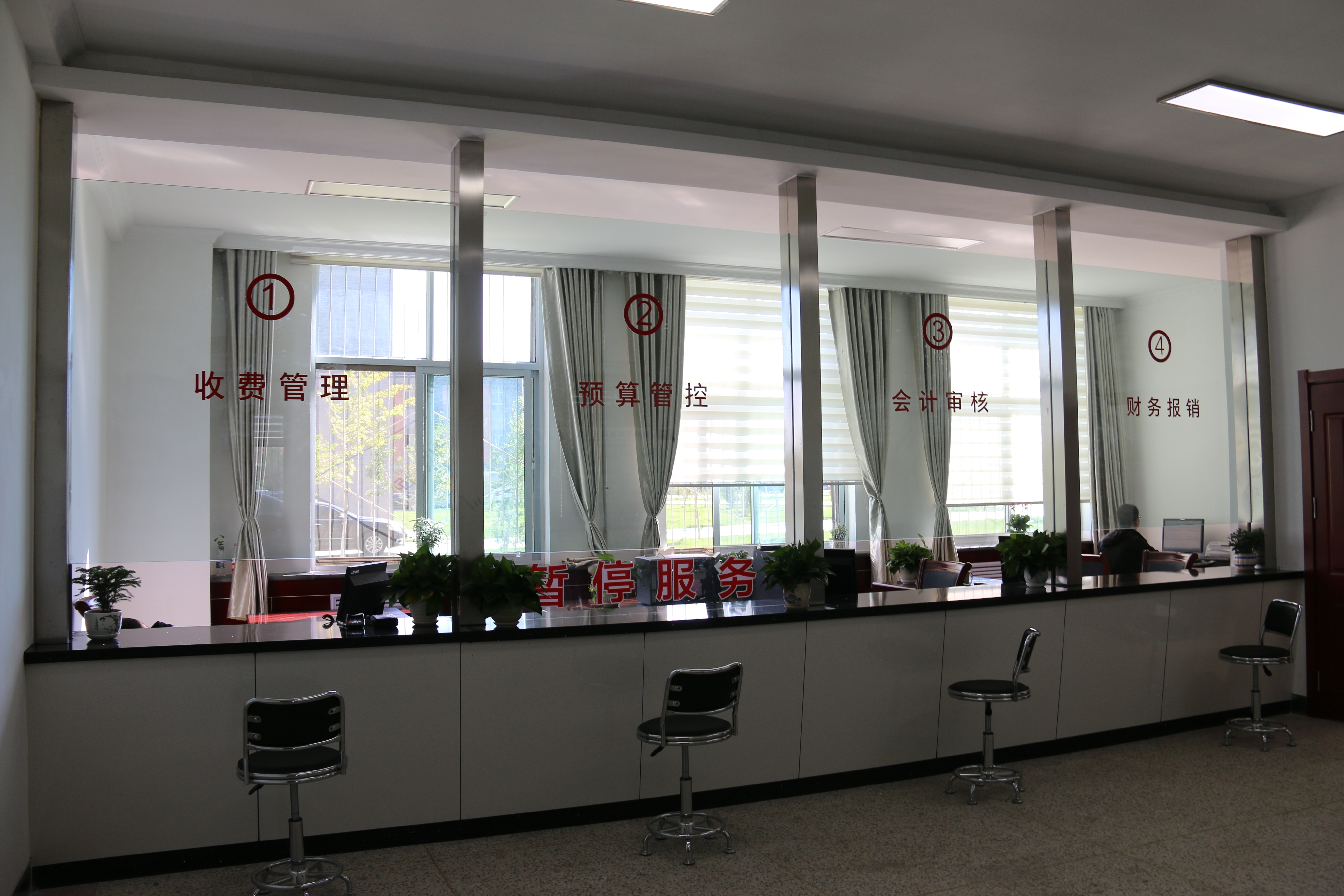 學(xué)院結(jié)算中心配備高校財(cái)務(wù)管理系統(tǒng)和學(xué)生收費(fèi)結(jié)算軟件,設(shè)有四個(gè)職能服務(wù)窗口,分別為收費(fèi)管理窗口、預(yù)算管控窗口、會(huì)計(jì)審核窗口和財(cái)務(wù)報(bào)銷窗口,并配有設(shè)施齊全,環(huán)境優(yōu)雅的服務(wù)大廳。投入使用后,結(jié)算中心將實(shí)現(xiàn)財(cái)務(wù)的收費(fèi)、預(yù)算、審核和報(bào)銷等項(xiàng)目的點(diǎn)對(duì)點(diǎn)服務(wù),為學(xué)院的財(cái)務(wù)管理和服務(wù)工作提供一個(gè)整潔有序、高效務(wù)實(shí)的環(huán)境。