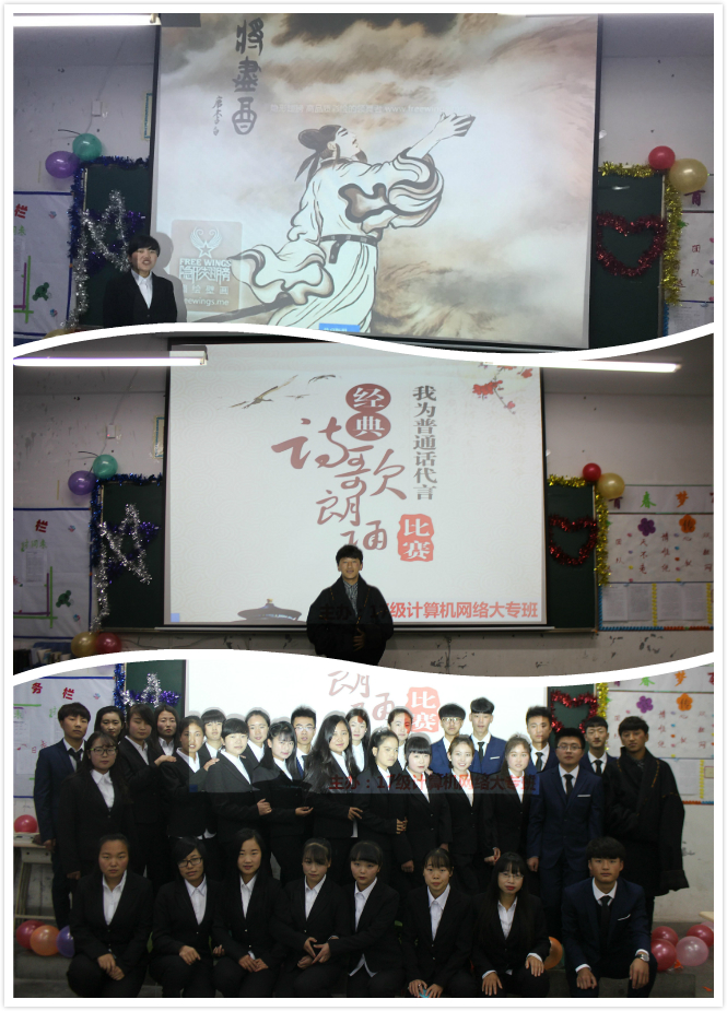 為了弘揚(yáng)中華民族傳統(tǒng)文化,倡導(dǎo)學(xué)生立德修身,培育愛國情操,2017年11月20日,17級(jí)計(jì)算機(jī)網(wǎng)絡(luò)大專班舉辦了主題為“傳承中華文化,共筑青春夢(mèng)想”經(jīng)典詩歌誦讀比賽。