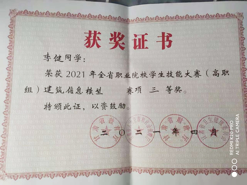 2021年全省職業(yè)院校學(xué)生技能大賽(高職組)建筑信息模式賽項(xiàng)三等獎(jiǎng)